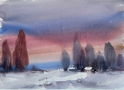 Акварель — это сложная и многогранная техника, совмещающая в себе особенности как графики, так и живописи. На мастер–классе будет изображен пейзаж, передающий атмосферу морозного вечера. На занятии участники научатся планировать этапы выполнения работы. В процессе занятия будут рассмотрены основные приёмы техники «по–сырому», с помощью которых будут написаны небо, деревья и снег. Создание гармоничной композиции будет основной целью мастер–класса. 26 декабря (пятница) 2025 г. в 15:00 в Детской художественной галерее РОМИИ состоится занятие «Застывший закат» из цикла «Акварельные пятницы». Мастер–класс для детей старше 15 лет и взрослых. Занятие проведет художник–акварелист Макагонов Роман Борисович. Продолжительность занятия – 1, 5 часа. Материалы входят в стоимость. Запись по WhatsApp: +7–918–850–01–41 Ростов–на–Дону, пр. Чехова, 60 Тел. 266–59–87, 266–45–14 Детская художественная галерея