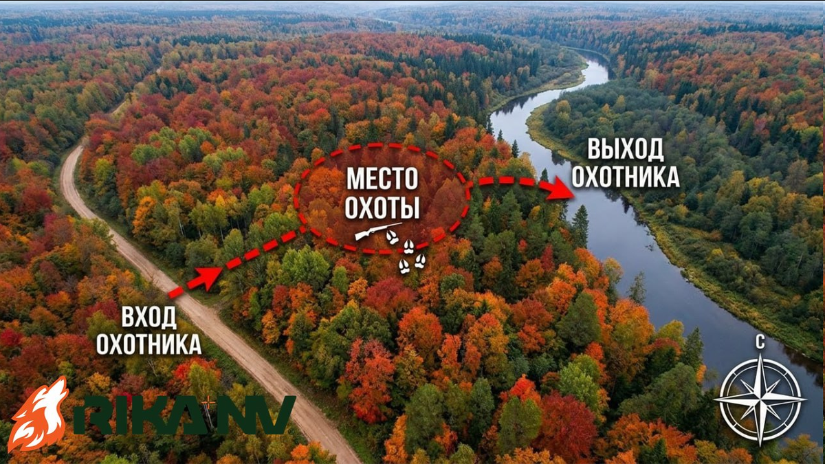 И дальше вы идёте не туда-сюда, а по трём сторонам, закрывая район. Так вы не дублируете следы и не оставляете запаховую “полосу” по одной и той же линии. Смысл треугольника — не геометрия ради красоты, а управление запахом и шумом. Вы выбираете вход так, чтобы не пересекать коридор зверя, контрольную точку — так, чтобы ветер не уносил запах в подход, и выход — чтобы не возвращаться по уже “засоленной” линии.