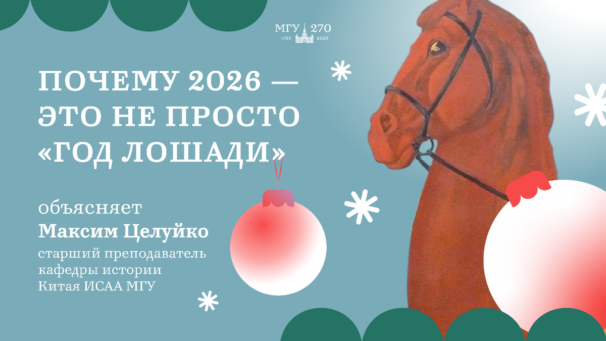 2026 год в китайской традиции называют годом «огненной лошади». Но за этим названием скрывается куда более сложная система. Разбираемся со старшим преподавателем кафедры истории Китая ИСАА МГУ Максим Целуйко, что такое бин-у 丙午, как работают небесные стволы и земные ветви и почему лошадь сама по себе вовсе не «огненная». Наступающий 2026 год в традиционной китайской системе исчисления времени получил обозначение бин-у 丙午. Часто его называют годом «огненной лошади» или просто годом лошади. Иероглифическое обозначение бин-у 丙午 составляется путем комбинирования одного из десяти знаков десятеричной системы «небесных стволов» с одним из двенадцати знаков системы «земных ветвей». Все их 60 возможных правильных комбинаций образуют шестидесятеричный цикл, которым можно измерять время, например дни или годы. Наступающий год – это 43-й год шестидесятеричного цикла. Первый знак этого обозначения, бин 丙, – это третий из десяти знаков десятеричной системы «небесных стволов» тяньгань 天干. В бесконечн