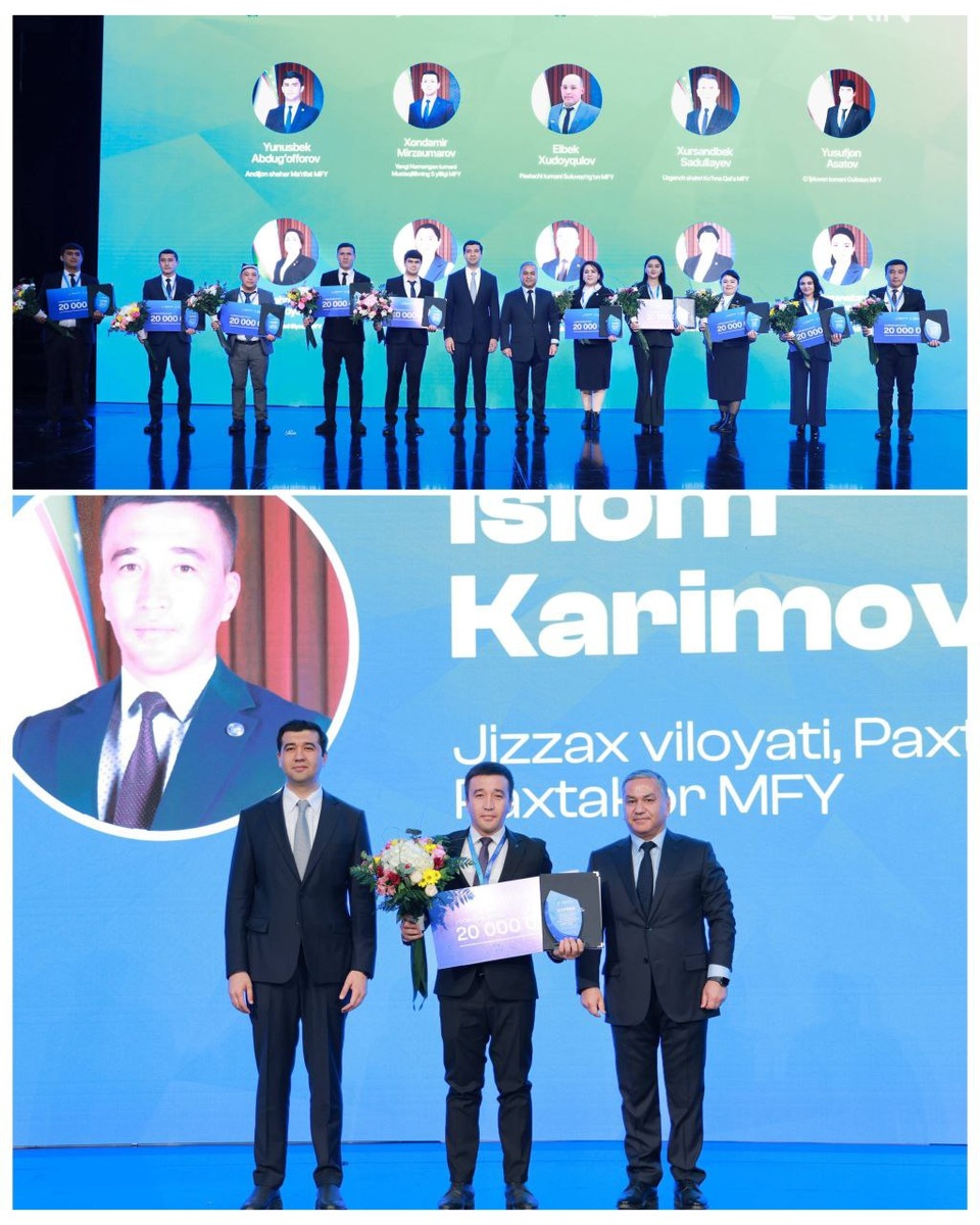 “Йилнинг энг намунали маҳалла ёшлар етакчиси” танловининг республика босқичи бўлиб ўтди. Бўстонлиқ туманида ўтказилган танловда мамлакатимизнинг турли ҳудудларидан ташриф буюрган фаол ёшлар етакчилари ўз фаолияти давомида амалга оширган ишлар, илғор тажрибалар ва ташаббусларини намойиш этишди. Бугун пойтахтдаги Ёшлар ижод саройида танлов ғолибларини тақдирлаш маросими ўтказилди. Унда Пахтакор туманидаги "Пахтакор" МФЙ ёшлар етакчиси Ислом Каримов фахрли 2-ўринга муносиб топилиб, ғолиблар сафидан жой олди. Каналимизга обуна бўлинг ва энг сўнгги янгиликларни кузатиб боринг Jizzaxnews |Тelegram | Facebook | Dzen | YouTubе