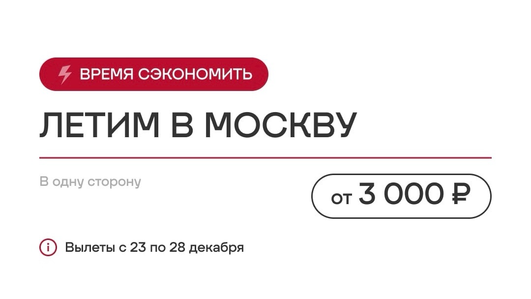 В этом году столицу украсили особенно сказочно — летим гулять по нарядным улицам, греться глинтвейном на ярмарках и ловить новогоднее настроение. Тем более, что с сегодняшнего дня и до конца недели цены на редкость низкие — приятный праздничный бонус для тех, кто планирует поездку. 📍 Из Омска — от 5000 ₽. 📍 Из Барнаула — от 4000 ₽. 📍 Из Екатеринбурга — от 3000 ₽. 📍 Из Краснодара — от 4100 ₽. ❗️ Вылеты только с 23 по 28 декабря. Продажи уже открыты! Билеты — на нашем сайте, в мобильном приложении, контакт-центре и авиакассах. Предложение ограничено. Цена актуальна на момент публикации. Включите уведомления в этом канале и присоединяйтесь к нашей акции «Игра на повышение» — каждый билет, подходящий под условия, повышает шансы на выигрыш!