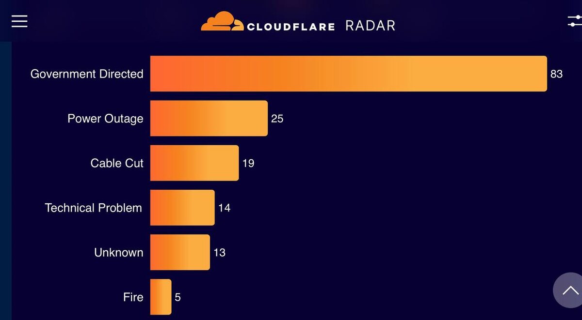 Что происходит с интернетом? Cloudflare выкатил свой ежегодный отчет Year in Review 2025, и он неожиданно оказался не столько про технологии, сколько про власть. Главный вывод звучит тревожно просто: половина крупных интернет-сбоев в мире вызвана не авариями, не хакерами и не багами — а прямым вмешательством правительств. За 2025 год Cloudflare зафиксировал 174 крупных сбоя в работе интернета, и 83 из них были инициированы государственными структурами. Где-то отключали связь целиком, где-то ограничивали HTTPS, где-то «временно» резали трафик. В отчёте даже отдельно упоминается Китай: 20 августа 2025 года в течение примерно часа доступ по HTTPS был частично ограничен. Формально — один инцидент. По факту — показательный. При этом сам интернет продолжает расти. Глобальный трафик увеличился на 19%, несмотря на цензуру, блокировки и геополитику. Люди и бизнес просто продолжают жить онлайн, даже когда им пытаются перекрыть кислород. Картина мира по сервисам почти не меняется: Google, Fac