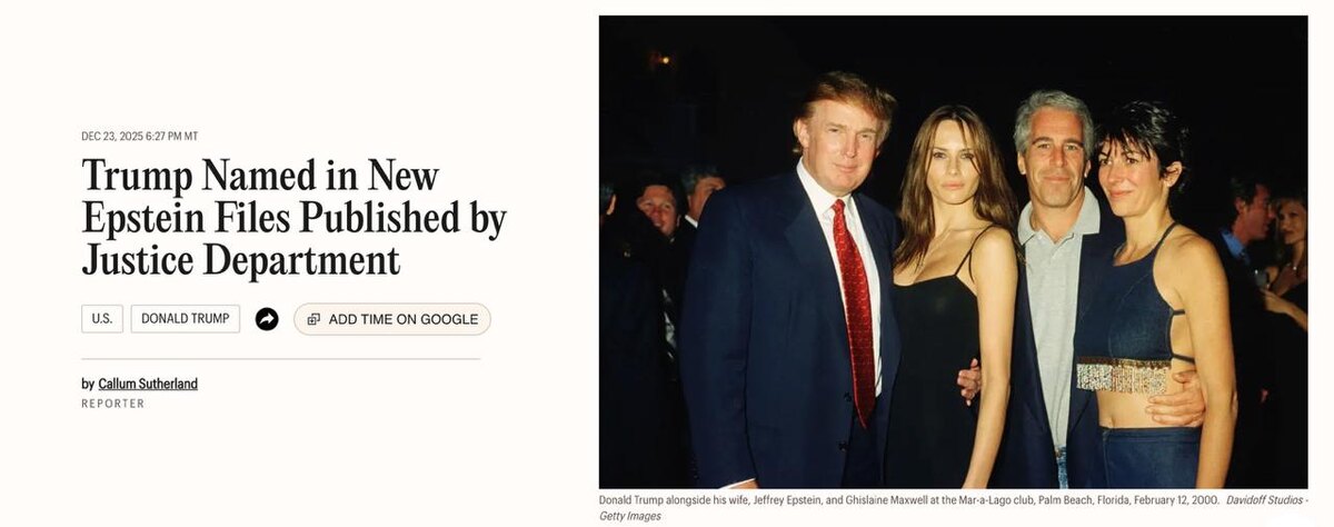 Упоминается, что он «изнасиловал ее вместе с Джеффри Эпштейном». Минюст США же назвал часть материалов фейком. Ну видимо, всё, что касается Трампа и идёт не из его уст — это фейк. @lobushkin