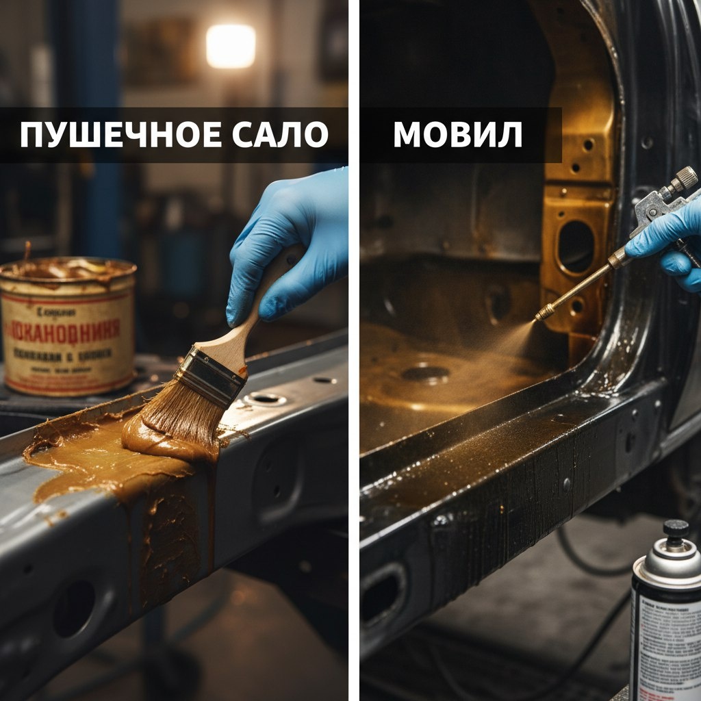 Мовиль появился позже как более технологичное решение — более жидкое, удобное для нанесения и лучше подходящее для скрытых полостей кузова.