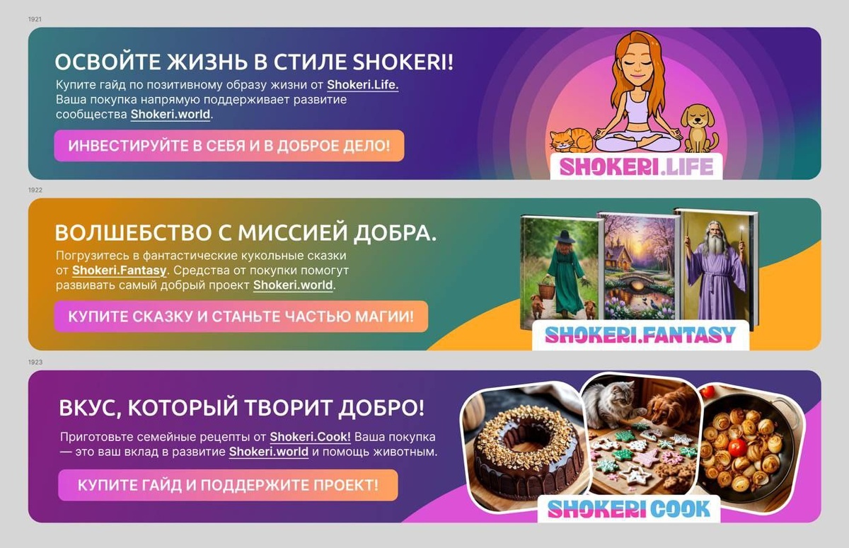 У нас готовы все макеты баннеров рекламы shokeri.com в поддержку самой доброй социальной сети для животных shokeri world