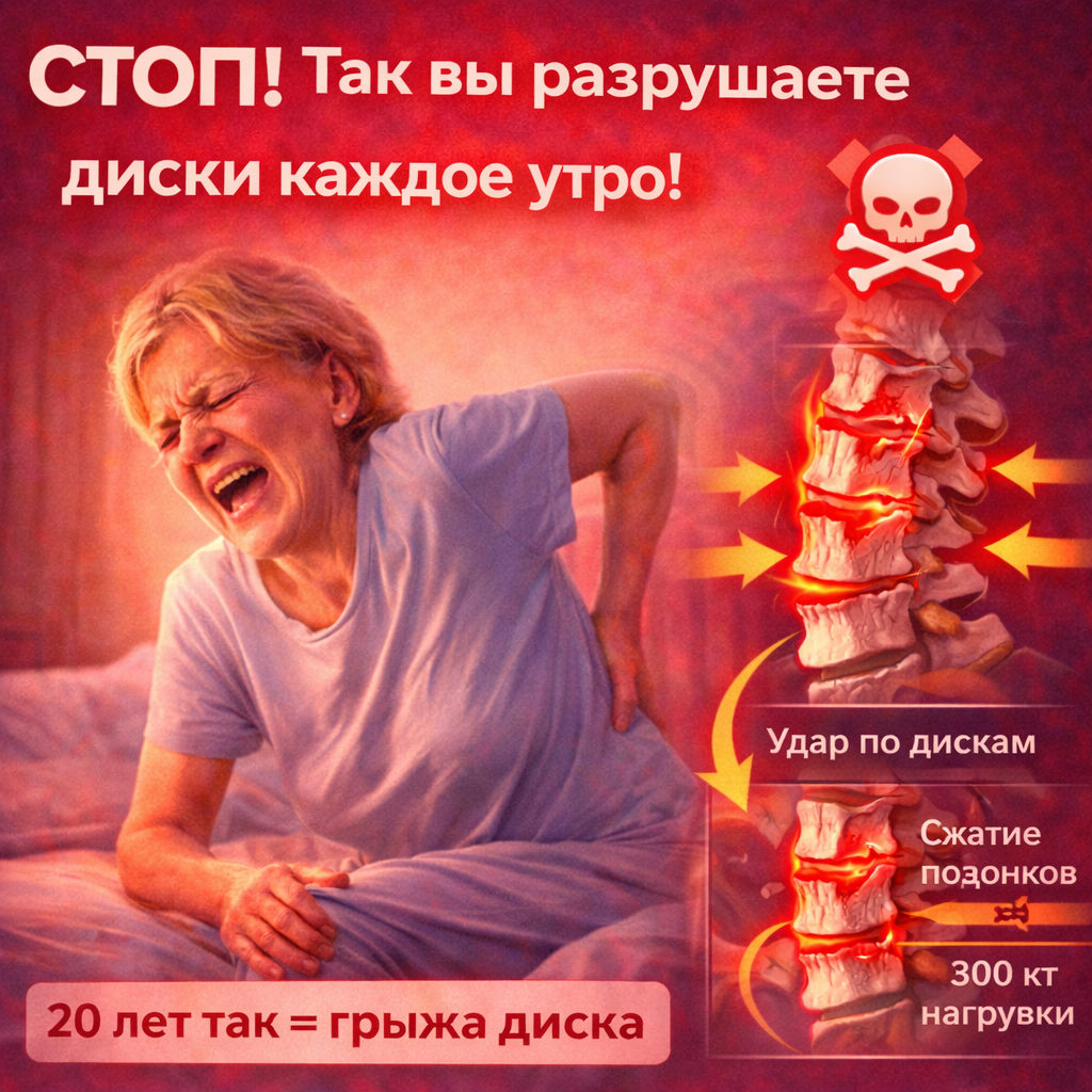 Резкий подъём = ежедневная микротравма дисков. Через годы — боль, грыжи, протрузии.