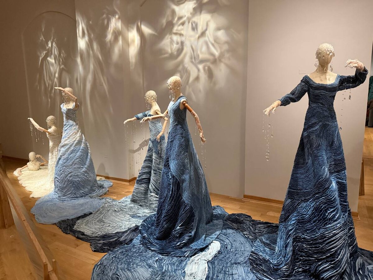 впечатлениями 😊 «Сны Алёны» строятся вокруг традиции, ручного труда и тактильных материалов. Орнаменты, ткани, формы — всё выглядит уверенно и собранно, но эта логика довольно быстро становится понятной. После первых залов остаётся ощущение, что выставка не столько развивается, сколько подтверждает уже заданное настроение 🌟 Отдельно заявлена попытка соединить традиции с новыми технологиями. Для этого используются айпады: наводишь камеру на инсталляции, и на экране появляются «растущие» грибы. Идея понятна — цифровое как продолжение органического, но реализация выглядит странно. Качество камер слабое, эффект работает не всегда точно, и в итоге технология не усиливает впечатление, а скорее выбивает из общего ритма, особенно на фоне живых, материальных объектов 🧐 Общий вывод таков: это спокойная, визуально цельная выставка, которая подойдёт для медленного просмотра. 📌Просто важно идти без ожидания неожиданностей или резкого высказывания. 📍 Выставочный комплекс Исторического музея