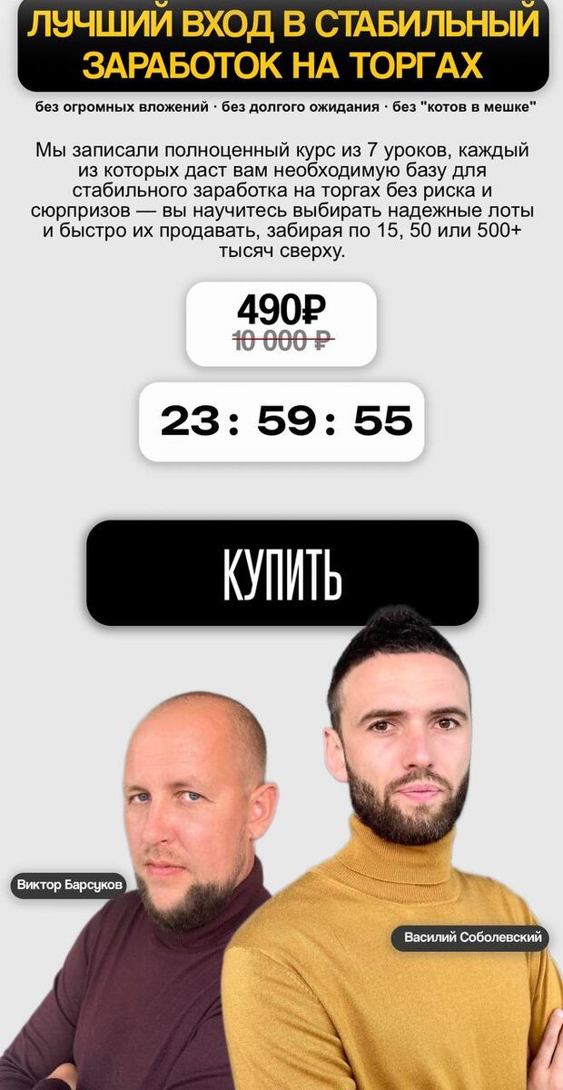 🔥 Сегодня мы открываем распродажу наших 7 уроков с базовой информацией про заработок на торгах по банкротству 🥳 Отзывы на них вы можете увидеть выше. Это — лучший вариант, чтобы разобраться в торгах, ведь вы всего за 7 уроков сможете разобраться: — В документах и регистрации на торгах — В выборе и проверке лотов — В участии и победе на торгах — В последующей быстрой и прибыльной перепродаже https://hidden-gold.ru/kurs Эти уроки настоящее сокровище для тех, кто хочет без воды и быстро найти ответы на интересующие вопросы. А даже, если они останутся, у вас будет специальный бонус: бесплатная консультация, на которой вы разберетесь с тем, что осталось непонятым, а также с тем, как и сколько сможете зарабатывать именно вы в своем городе 🔥 Переходите по ссылке и забирайте уроки за 490 рублей — это самая низкая цена, ниже уже не будет. https://hidden-gold.ru/kurs Вы сможете еще до Нового Года разобраться в торгах, понять как они устроены и увидеть все закулисье площадок изнутри.