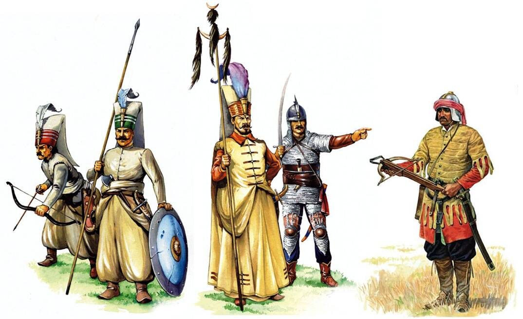Фланги их армий всегда прикрывали тучи легких конных стрелков из числа кочевников, в тылу стояли сипахи – закованная в доспехи помещичья конница. Ну, конечно, иного типа, чем западные латы. Кавалеристы из европейской части империи обычно не имели луков, из коллеги из азиатской половины страны, напротив, имели.