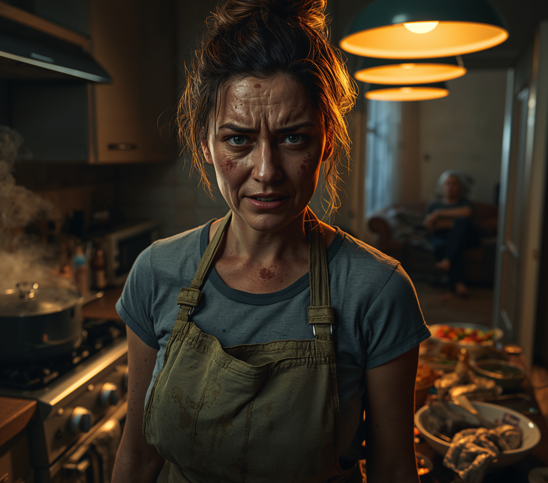 Следующие четыре часа превратились в марафон. Полина металась между кухней и гостиной. Принеси, подай, убери грязную тарелку, подложи салфетки, налей морс детям. Родственники сидели за накрытым столом, громко обсуждали политику, цены на бензин и новую дачу соседей по участку. Никто, абсолютно никто не предложил ей помощь.