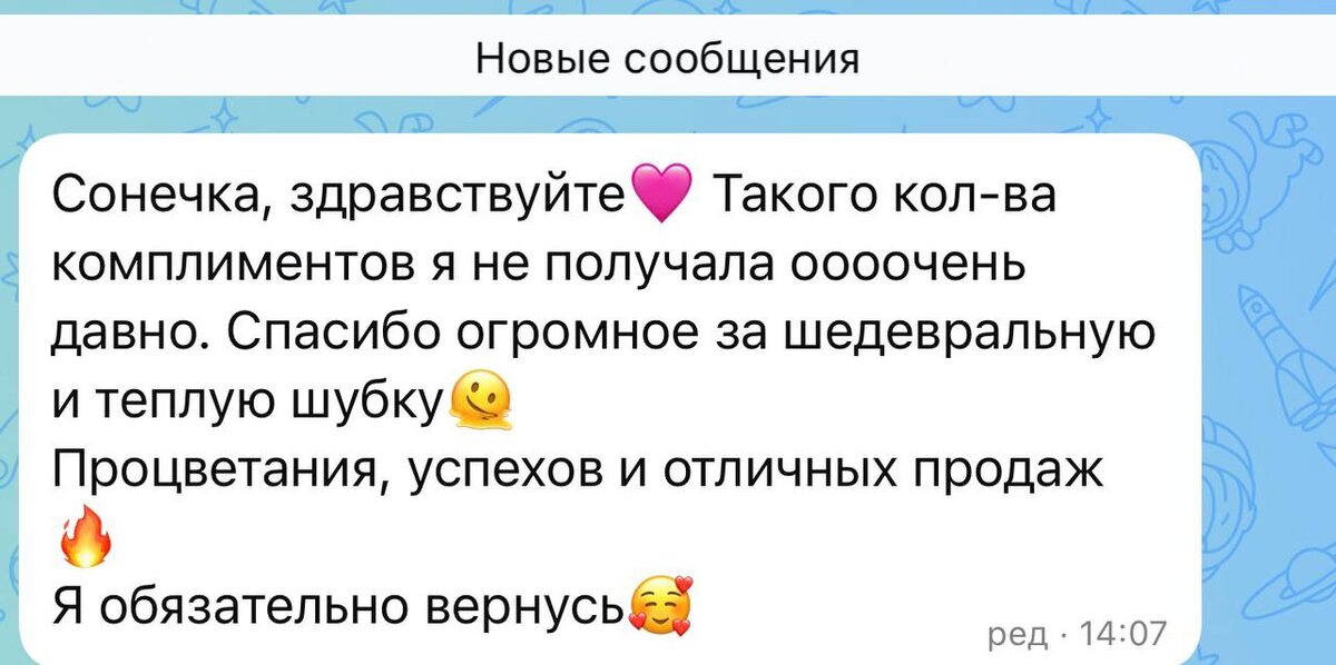 🙃 Но, когда я получают от Вас такие отзывы, я люблю его еще больше!!! 🤣 И несказанно рада, что шубки приносят людям столько позитивных эмоций!!! 🥰 Не перестаю благодарить Вас за обратную связь❤️❤️❤️
