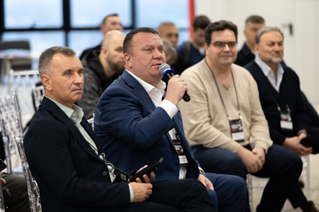 Следующим спикером выступил Антон Павловский — исполнительный директор ГК Большегруз. Антон представил компанию в полном объеме, подробно осветив весь спектр её деятельности и ключевые компетенции.