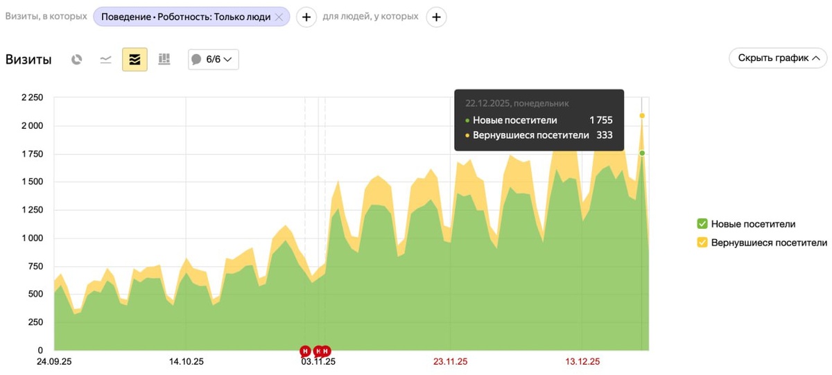 Неделю назад вырезали счетчики GA и ... ничего не произошло. Трафик проекта растет, весь контент от ИИ. Рекорд вон поставили - перешагнули за 2к в сутки.