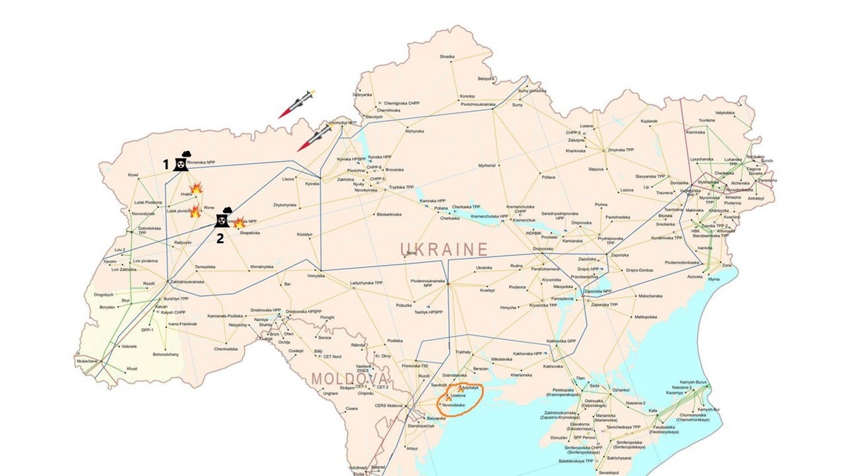 ПОСЛЕДСТВИЯ ОБСТРЕЛОВ В ночь и утром враг осуществил очередную, уже девятую с начала года, массированную атаку на энергосистему Украины. В результате этого – к утру почти полностью обесточены потребители в Ровенской области. Подтверждены удары в Ровно и Шепетовке А это две подстанции ПС 330, частично отсекающие Хмельницкую АЭС Но лиха беда начало, пусть постепенно заглушают мощность. Суммарная генерация АЭС Ровенской (1) и Хмельницкой (2)= 4.7 ГВт. Зачем западноукраинским селюкам такой переизбыток в розетках. схемы и карты