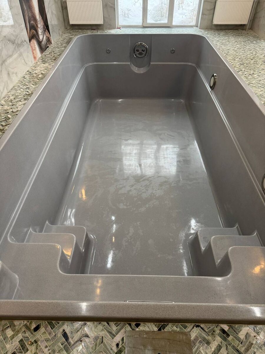 Бассейн ЭРИ 600 6х3х1,5м под ключ для частного дома 🏡 цвет серия GRANÍT G-4 (серый гранит) г. Уфа Фото до/после Хотите узнать стоимость проекта, ставьте ➕ в комментариях 👌😊 #бассейны #cgpools