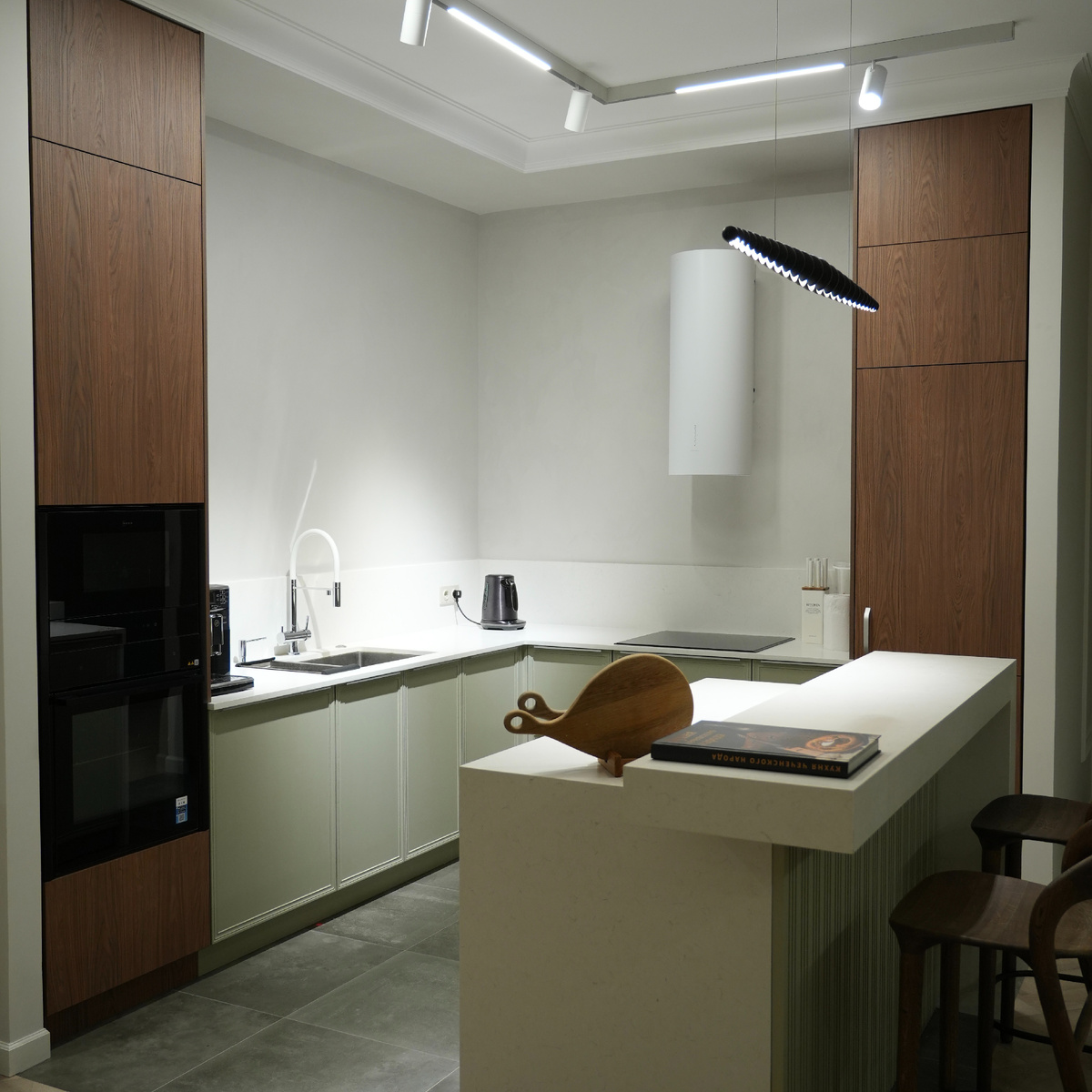 Завершили ещё один комплексный проект — мебель в едином стиле для кухни и жилых зон. Получилось функционально, спокойно по цвету и очень “дорого” по ощущениям. Кухня с островом Остров — дополнительная рабочая поверхность и место для быстрых завтраков. Вытяжка в формате “труба” — акцентный элемент, который подчёркивает современную геометрию кухни. Фасады оливкового цвета в эмали — мягкий оттенок, который “согревает” интерьер и остаётся актуальным. Ручки скоба — удобный хват, практичность на каждый день. Столешница из искусственного камня — монолитно, аккуратно, легко в уходе. Дополнительно: стенка под ТВ — поддерживает общий ритм интерьера и собирает пространство. Детская Шкаф для игрушек и наград — чтобы у ребёнка была своя “витрина достижений” и порядок в мелочах. Шкаф для одежды — продуманное хранение без лишних комодов. Письменный стол — отдельная зона для уроков и творчества. Спальня Гардероб с зеркальными дверями — визуально расширяет комнату и добавляет ежедневный комфорт. 🔥 Акц