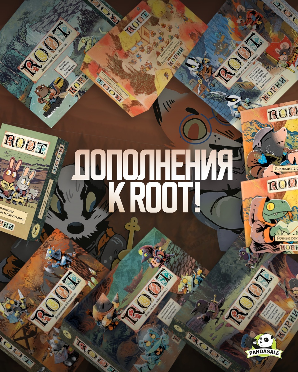 Если вы давно хотели расширить лесные войны — самое время! 🌲 Коротко и по делу, что именно приехало и зачем оно нужно... 🐼 🔥 Мародёры. Добавляют две агрессивные фракции и усиливают конфликты на карте. Идеально, если хочется больше давления, стычек и «жёсткого» Root. 🛷 Речные рекруты / Речное Братство. Они: — добавляют экономику и услуги, завязанные на действия соперников — усиливают переговоры, сделки и взаимную выгоду — делают партии более гибкими и вариативными Отлично подходят для опытных компаний. 💪 Подземные рекруты / Подземный мир. Две новые фракции + двусторонние карты: — подземное Герцогство (стройка и контроль) — заговорщики (ловушки и блеф) Root становится ещё глубже и вариативнее. 🦝 Изгнанники и партизаны. Набор альтернативных карт ролей и улучшений. Освежает базу и дополнения, меняет привычные стратегии без усложнения правил. 🐇 Рекруты-мародёры. Модуль для найма специальных бойцов. Добавляют тактические решения и усиливают асимметрию фракций. 🐼 Механизмы и Ме