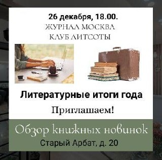 Журнал "Москва" и "ЛитСоты" приглашают! Друзья! ❄ Приближается наша традиционная встреча! - Подведение литературных итогов года! Будем обсуждать книжные новинки года, делиться впечатлениями и наблюдениями ☕🤗 🌸Кто желает выступить - пишите в личку Анастасии Черновой. Или в комментарии Что делать если вы прочитали книгу только сейчас, а вышла она не в 2025 году? Конечно, расскажите! Распахнем границы времени 💥 26 декабря, 18.00. Адрес прежний: Старый Арбат, д. 20 Журнал "Москва"