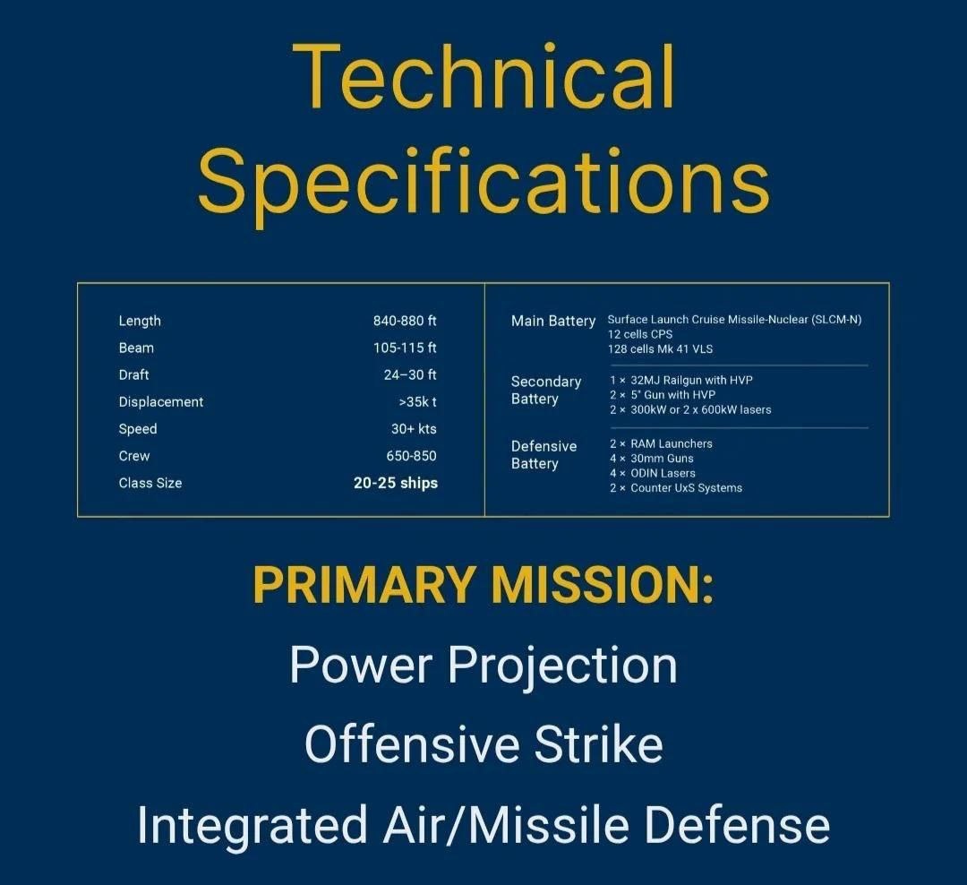Опубликованы ТТХ линкора USS Defiant класса Trump "Золотого флота" США, про который рассказывал Трамп.