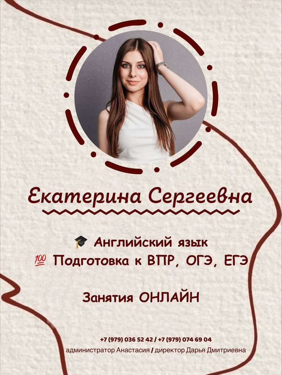 📚 👩🏻🏫 Ваш репетитор по английскому языку для уверенных результатов! Специалист с уникальным образованием: окончила педагогический вуз с двумя профилями — китайский и английский языки. Этот опыт позволяет находить самые эффективные подходы к обучению! 🎓🌍 Готова помочь вам с: ✅ Английским языком с любого уровня ✅ Подготовкой к ВПР, ОГЭ и ЕГЭ 💯 Екатерина Сергеевна создает комфортную и продуктивную атмосферу на занятиях. С ней вы легко восполните пробелы, полюбите язык и достигнете своих учебных целей. 💻 Занятия проходят ОНЛАЙН с использованием современных материалов: интерактивные презентации, разнообразные задания и дополнительные ресурсы для максимального погружения в язык. Не откладывайте мечту свободно говорить по-английски и получить высокие баллы на экзаменах! Записывайтесь на пробное занятие. Запись в Telegram: 📞 @delaykaknado_admin (администратор) 📞 @DariyaDmitrievnaa (директор) Группа ВК: 📎 https://vk.com/delaykaknadorepetit #репетитор #делайкакнадо #английски