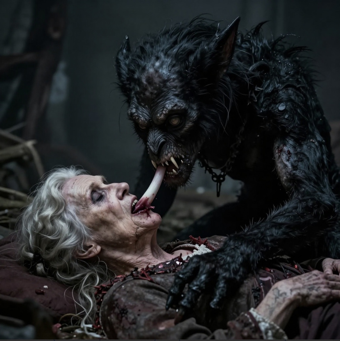 Худое, измученное ссадинами и открытыми ранами тело. Конечности — невероятно худые и длинные. Оно сидело у раскопанной могилы и ело.