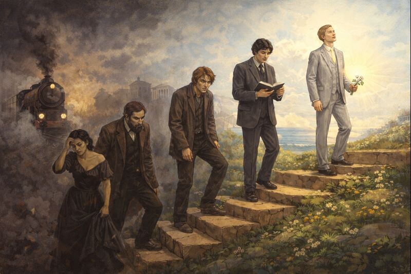 Лёвин, наоборот, проходит сомнение и кризисы, не разрушаясь. Он ищет смысл не как лозунг, а как внутреннюю ясность.