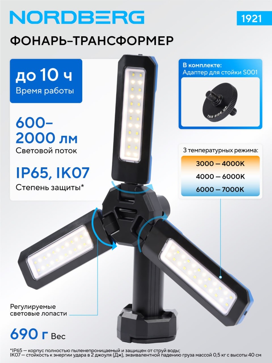 👍1933 Фонарь светодиодный гибкий, аккумуляторный, с магнитным захватом