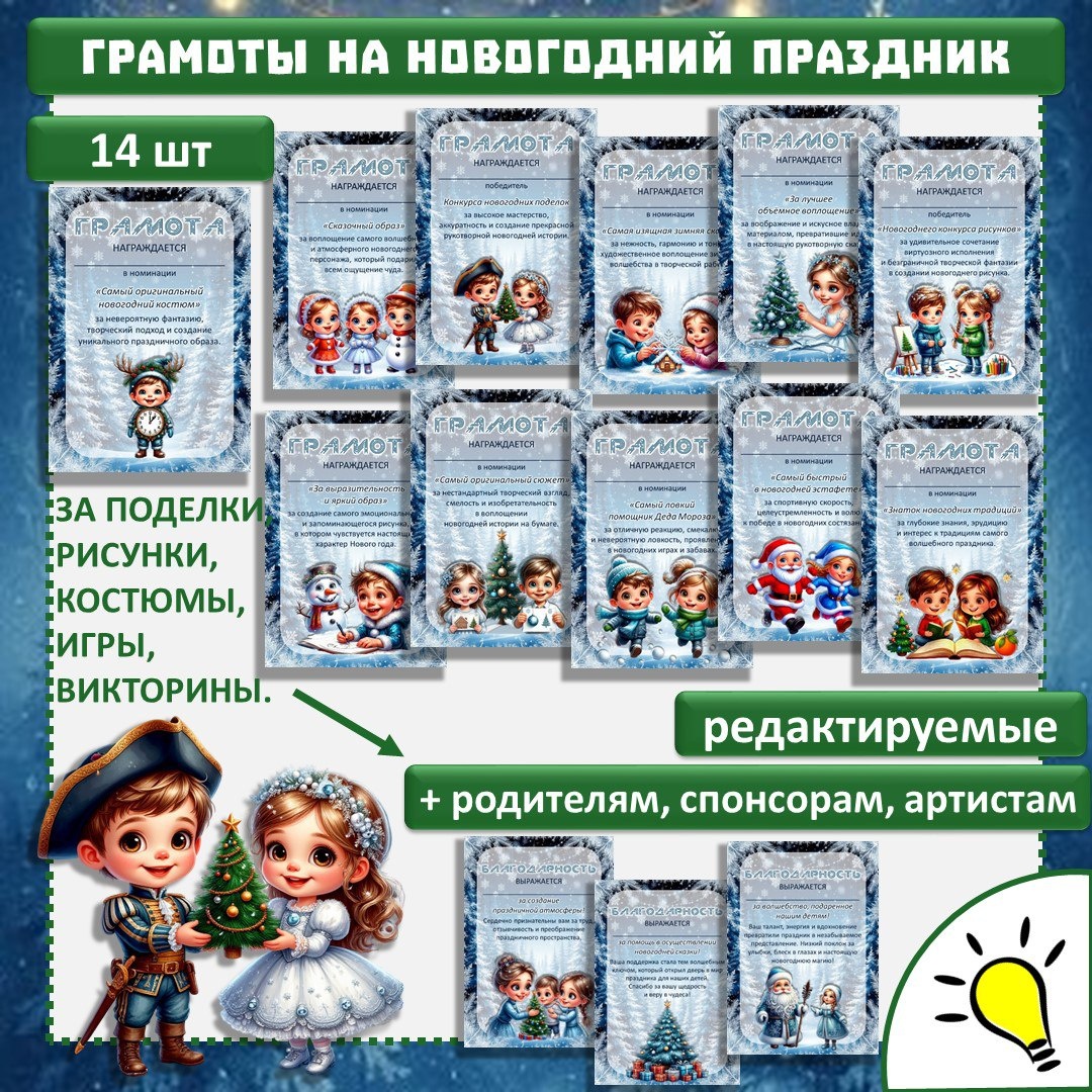 ! 🏆✨ Дорогие коллеги! Пусть каждый участник вашего праздника почувствует себя настоящим героем! Этот комплект из 14 грамот и благодарностей станет отличным завершением новогодних утренников и конкурсов. Что в наборе? • Грамоты за костюмы, поделки, рисунки и активность • Благодарности родителям, спонсорам и артистам • Элегантный зимний дизайн в сине-серебристой гамме • 2 формата: PDF для печати и PPTX для редактирования Скачайте, подпишите и подарите детям моменты настоящей гордости! ❄️ 📥Посмотреть подробнее или скачать https://vk.cc/cSENXG #новогодниеграмоты #награждение #утренник #НовыйГод