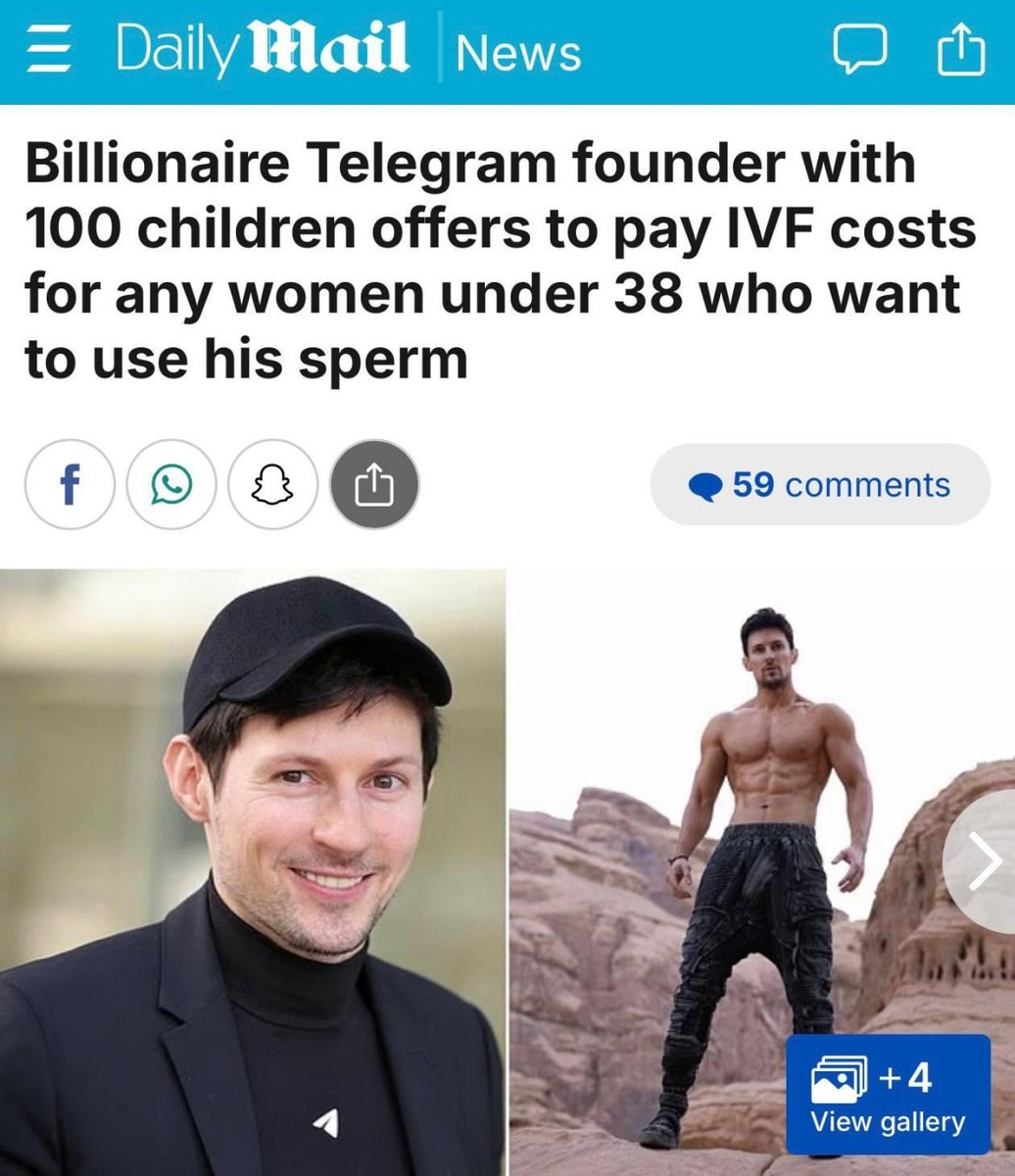 Условия всего два: будущей маме должно быть меньше 30 восьми лет, и она не должна быть замужем. При подтверждении родства дети смогут претендовать на наследство Дурова, которое оценивается в 17 млрд долларов. Империя Дуровых будет огромной🤯 CtrlAltDelights- подписаться