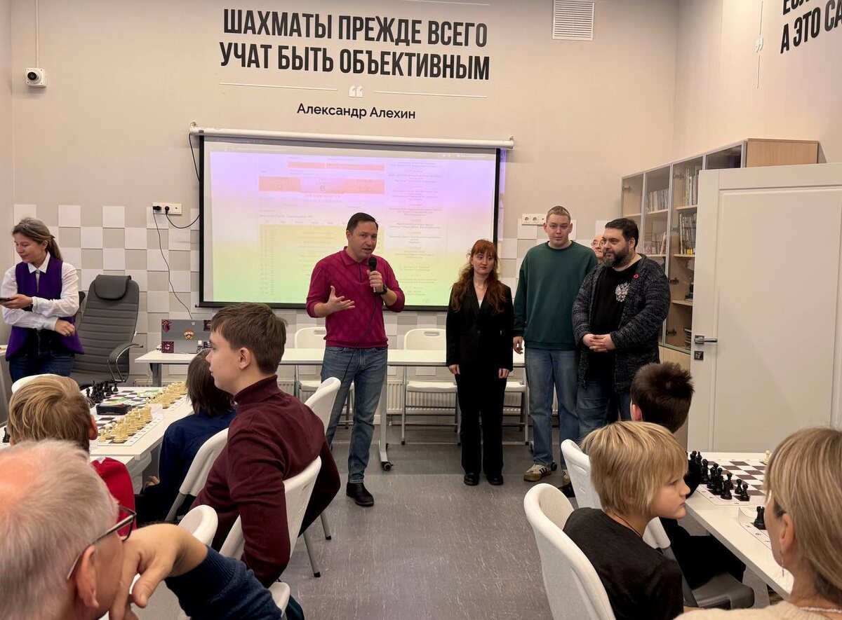 🎄♟️ В субботу в «Библиотеке шахмат» состоялся яркий и по-настоящему праздничный Новогодний шахматный турнир Шахматного клуба СЗАО. Официальный старт турниру дал заместитель префекта СЗАО Константин Игоревич Князев, поприветствовав участников и пожелав всем увлекательных партий и счастливого Нового года 🎉 Важно отметить, что за шахматными досками собрались не только жители Северо-Западного округа, но и любители шахмат со всех округов Москвы и Подмосковья, что сделало турнир по-настоящему массовым. После выступления зампрефекта к участникам обратились организаторы турнира. Виталий Тарасенко, главный тренер Шахматного клуба СЗАО и главный судья соревнований, подробно рассказал о нюансах игры в блиц и поделился планами развития клуба на 2026 год. Марина Колобовникова, начальник отдела физкультурно-спортивных мероприятий ГБУ г. Москвы «ОКЦ СЗАО», представила насыщенную программу предстоящих спортивных событий. Алина Бочковар рассказала о возможностях детской шахматной секции и пригласи