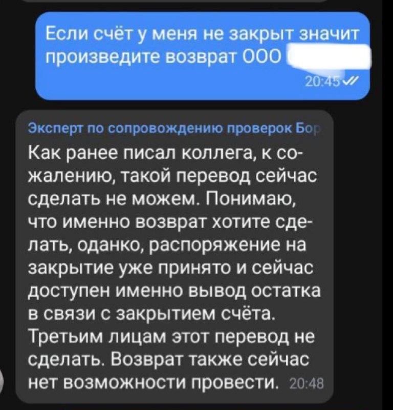 Клиенту помогает разобраться в ситуации юрист ФинХак. Что произошло: Клиент долго не пользовался ИП. Решил возобновить деятельность. Взял клиента на строительные работы и получил первую оплату в размере 750.000. С нее списались налоги, которые накопились за время, пока ИП не вело деятельность. Причем списались в двойном объеме. Вместо платежа в 150.000 рублей 300.000. По объяснению налоговой ошибка возникла на стороне Т-банка. Из оставшихся средств предприниматель решил вывести себе на карту 120.000 рублей для оплаты аренды квартиры и бытовых расходов. Т-банк заблокировал платеж и запросил все документы по всем операциям. Были предоставлены: ▪️Договор с заказчиком ▪️Договоры с двумя самозанятыми, строителями которым нужно было оплатить работу из выручки ▪️Договор аренды жилья и предыдущие платежки за аренду. ▪️Фотографии с объекта, что работа реально ведется. Итог: Т-банк после проверки документов отказал в проведении транзакции как подозрительной. Подал на закрытие счета еще до в