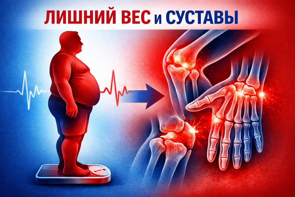 Избыточный вес — это не только про внешний вид и цифры на весах. Он напрямую влияет на здоровье суставов, особенно коленных, тазобедренных и позвоночника. ❗ Что происходит в организме? Каждый лишний килограмм создаёт дополнительную нагрузку на опорно-двигательный аппарат. Суставы вынуждены работать в условиях повышенного давления, что ускоряет износ хрящевых поверхностей и может приводить к боли, воспалению и ограничению подвижности. ➡️ Почему суставы страдают больше всего? Усиленная нагрузка на колени и бедра Изменение походки и биомеханики движений Повышенный риск развития артроза и воспалительных процессов 🧠 Простые факты, которые стоит знать ✔️ Каждые +5 кг веса увеличивают нагрузку на коленный сустав примерно в 15–20 раз при ходьбе. ✔️ Избыточный вес повышает риск артрита и ускоряет его прогрессирование. ✔️ Правильная физическая активность и снижение массы тела помогают уменьшить боль и сохранить подвижность суставов. 📈 Что можно сделать прямо сейчас? 🟢 Пересмотреть питание 🟢