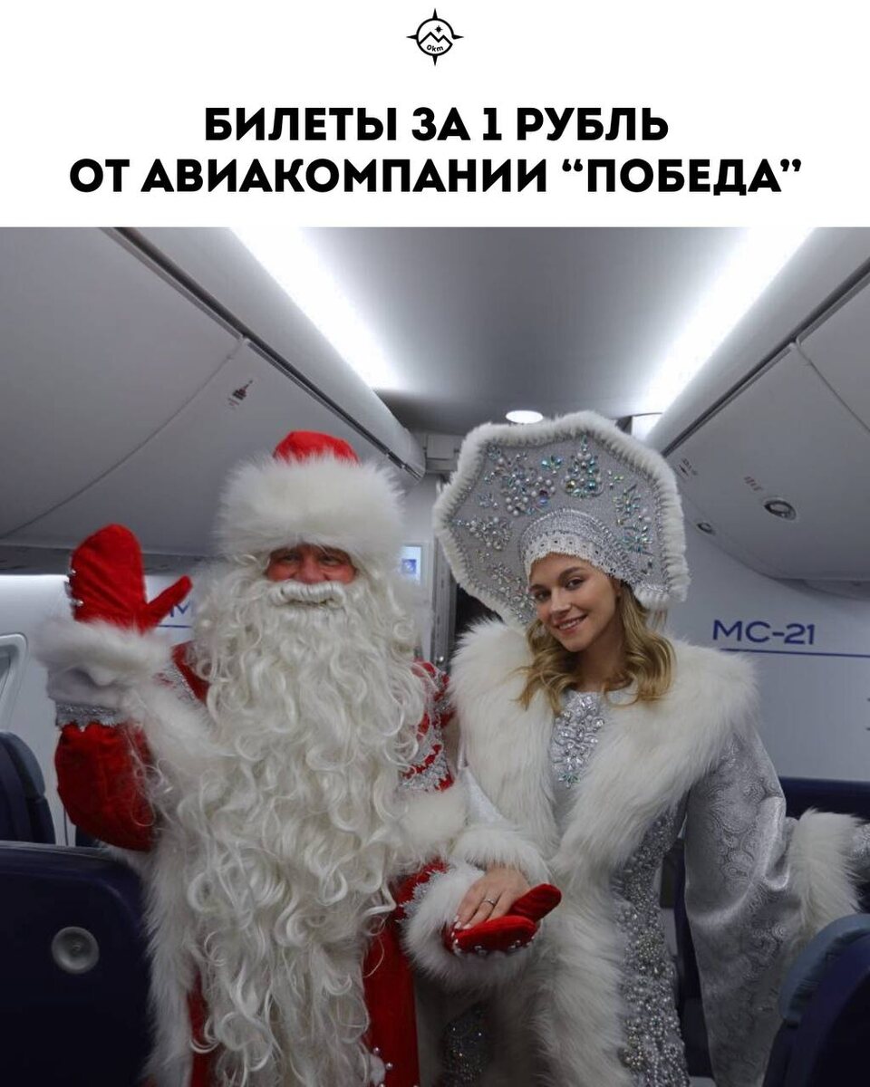 🎄С 31 декабря 2025 по 2 января 2026 летите Победой всего за 1 ₽ по внутрироссийской маршрутной сети при наличии свободных мест. Правда, придётся посидеть немного в аэропорту, дожидаясь того самого свободного места в каком-нибудь из рейсов. ❄️ Подойдите на стойку Победы в костюме персонажа русской сказки — Деда Мороза или Снегурочки ко времени открытия регистрации на выбранный рейс ❄️ Сообщите о желании улететь за 1 ₽ и дождитесь окончания регистрации ❄️ Получите билет при наличии свободного места на рейсе Важно: В костюме нужно оставаться до приземления в аэропорту назначения. Не давайте блёсткам и стразам осыпаться с вашего костюма, чтобы не создавать неудобства для других клиентов 🎅🏻Для Деда Мороза обязательны костюм и борода, а для Снегурочки – костюм и коса 🤶🏻В костюме Деда Мороза может быть только мужчина, в костюме Снегурочки — женщина