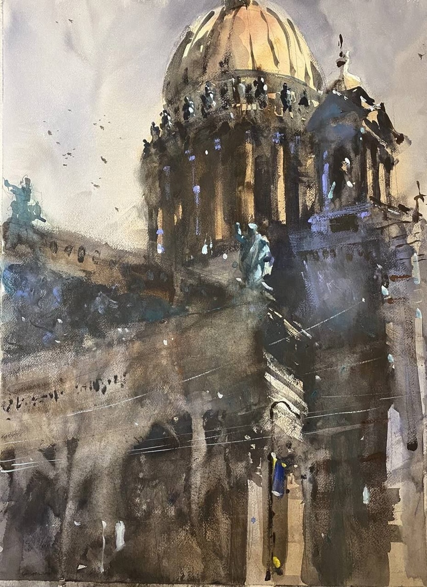 😎Детали, пропорции, формы - всё это есть в работах художника. Но нет четких очертаний, автор не стремится к реалистичности. Здесь больше эмоциональной составляющей. 😎Сергей все чаще передает свое настроение и внутреннее состояние акварелью. Для него важнее уловить дух города и его архитектуры, передать это ощущение зрителю через рисунок. Петербургские истории 📝 Лучшие места и истории 👼