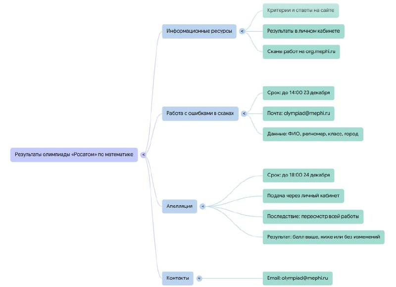 Критерии оценивания и правильные ответы размещены на сайте. Результаты участников и сканы работ доступны в личном кабинете на сайте org.mephi.ru в разделе "Результаты участия". Если в ваших сканах ошибка (отсутствуют листы, приложена работа другого участника и т.д.), напишите в срок до 14:00 23 декабря на почту olympiad@mephi.ru с указанием ФИО, регистрационного номера, класса, города, где вы писали олимпиаду, и просьбой прикрепить новый файл. Апелляцию на результаты проверки можно подать до 18:00 24 декабря 2025 года (по московскому времени) в личном кабинете участника в разделе "Результаты участия" -> "Олимпиады" -> "Подать апелляцию". Напоминаем, что при подаче апелляции происходит пересмотр всей вашей работы (балл может быть как повышен, так и понижен или оставлен без изменения). По вопросам обращаться на olympiad@mephi.ru