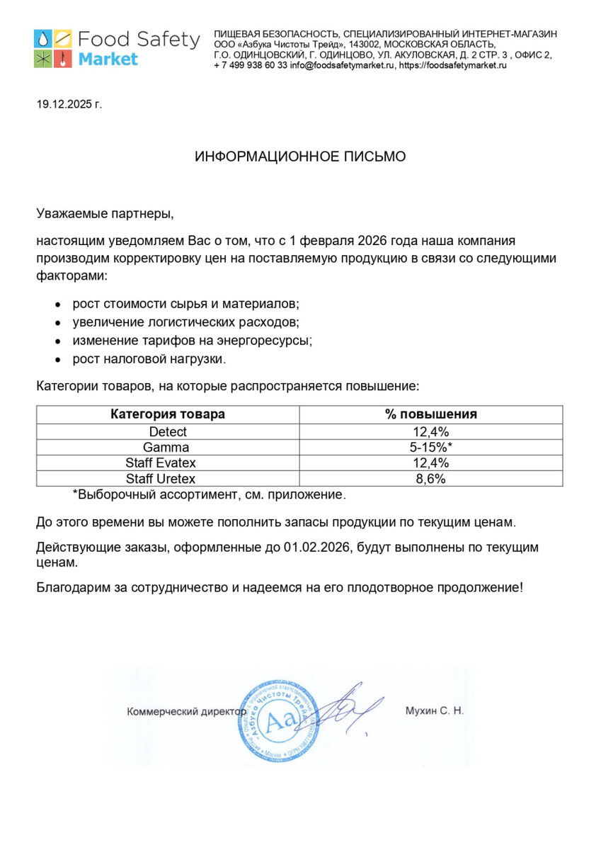 ❗️Уважаемые клиенты Food Safety Market, наш партнер HACCPER направил информационное письмо о повышении цен на свои товары в 2026 году.