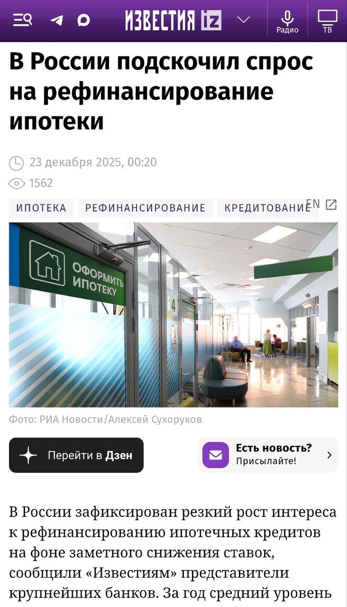Газета Известия пишет, что растет спрос на рефинансирование ипотеки