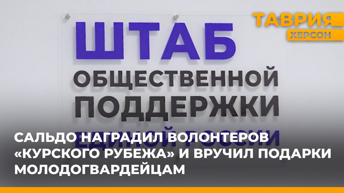 Губернатор Херсонской области Владимир Сальдо наградил волонтеров «Курского рубежа» и вручил подарки активистам «Молодой Гвардии» на встрече в штабе общественной поддержки политической партии «Единая Россия». Владимир Сальдо вручил новогодние подарки каждому волонтеру. В 2025 году «Единая Россия» традиционно проведет акции, направленные на поддержку жителей Херсонской области. Следует отметить, что активисты партии запустили работу новогодней мастерской в Штабе общественной поддержки. Ранее ТРК «Таврия» рассказала об открытии первого штаба общественной поддержки «Единой России» в Херсонской области.