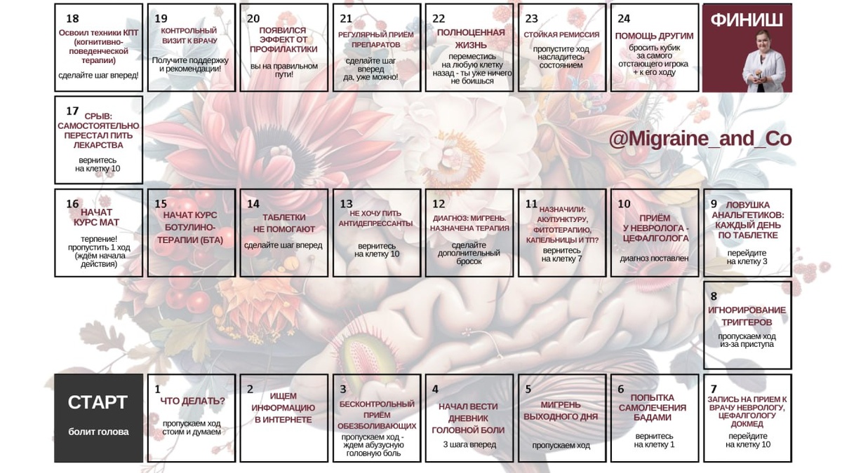 🎲 Знаете, что общего у пациента с мигренью и у игрока в настольную игру? Оба проходят путь с взлётами и падениями, перешагивая через клетки