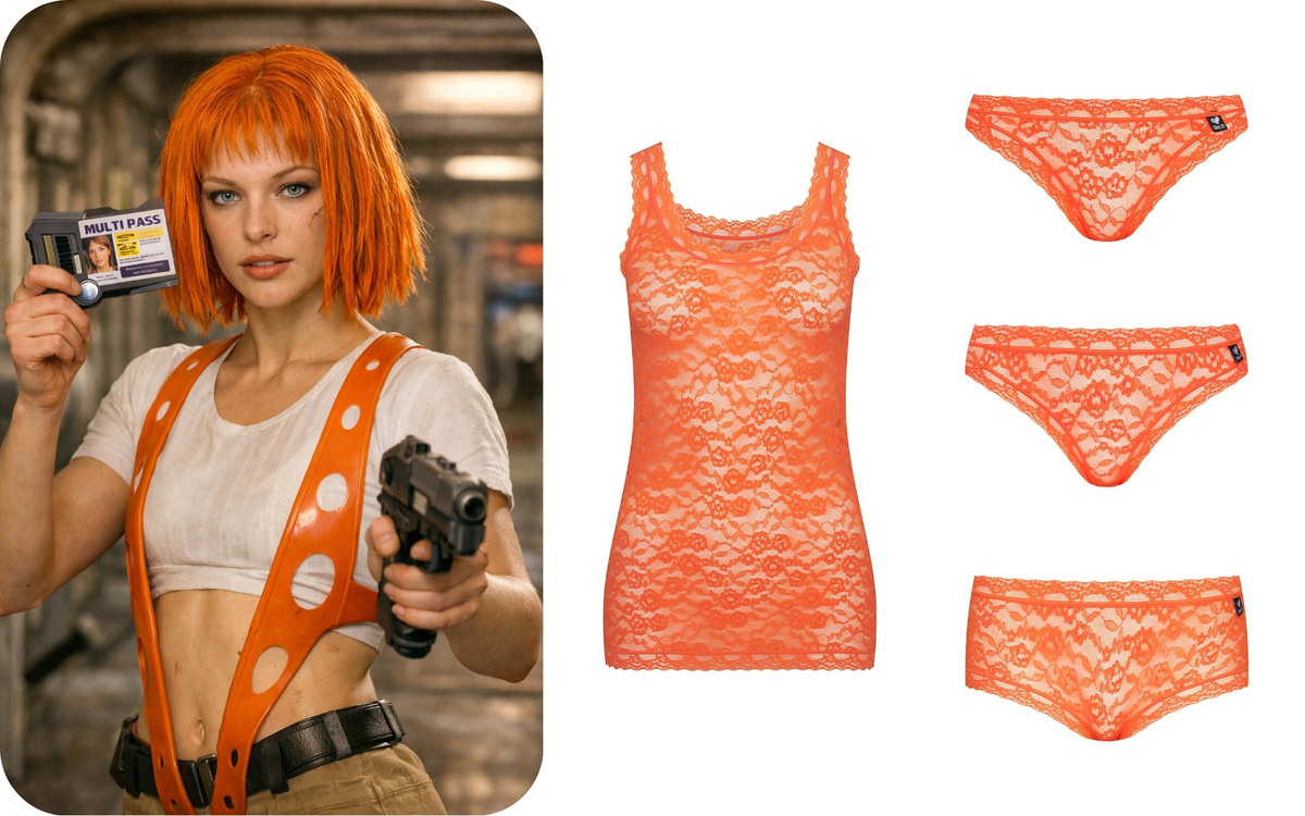 Представим, что культовые персонажи заглянули в гардероб Like it! — немецкого бренда, который создаёт бельё для энергичных девушек, молодых душой и обожающих жизнь во всех её красках. Каждая героиня нашла бы комплект, который идеально отражает её характер, эпоху и настроение. Здесь майки и трусы превращаются не просто в базу, а в способ рассказать историю, подчеркнуть индивидуальность и стиль. Лилу, «Пятый элемент»