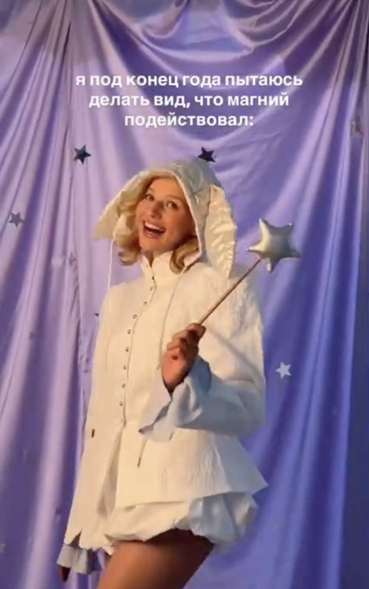 «Я под конец года пытаюсь делать вид, что магний подействовал», — прокомментировала ролик звезда.