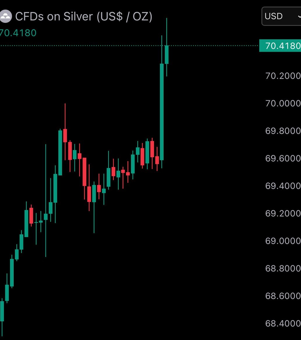 🔸Цена серебра достигла нового исторического максимума в $70.