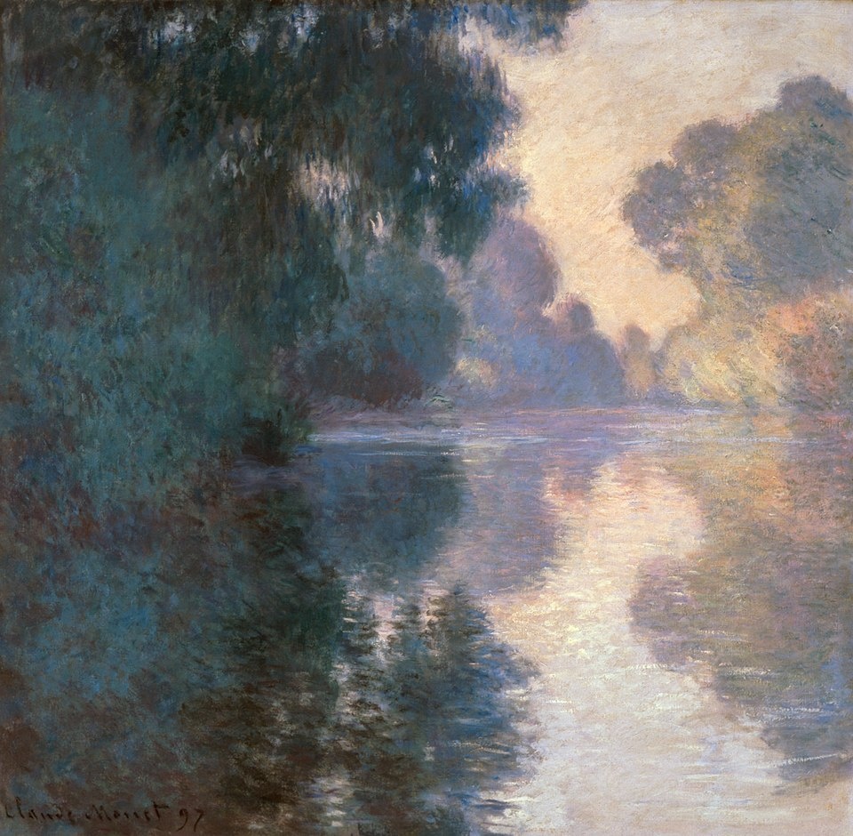 Летом 1896 и 1897 годов Клод Моне (1840–1926) начал серию «Утро на Сене», написанную в месте слияния рек Сены и Эпта. Как обычно, художник каждое утро вставал на рассвете, садился в лодку, возвращался к своему сюжету и сосредотачивался на запечатлении тонких атмосферных изменений от восхода до заката. На каждом холсте, почти квадратного формата, точка зрения и композиция оставались в значительной степени неизменными: большие лиственные деревья обрамляли водоём и направляли взгляд к линии горизонта, расположенной на средней высоте. Для Моне наиболее важным было запечатлеть, посредством цветовых эффектов и тщательной эволюции палитры, едва уловимые колебания света и атмосферы в тишине природы. На рассматриваемой картине лёгкий оттенок розового и жёлтого деликатно согревает холст, создавая ощущение восхода солнца. Эта серия представляет собой единое целое, а также предвосхищает, благодаря взаимодействию отражений и акценту на воде, его знаменитую серию «Водяные лилии (Кувшинки)». Кар
