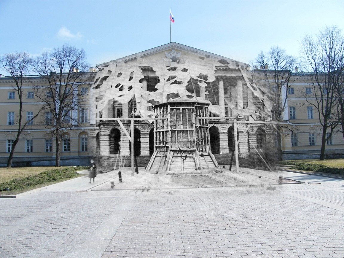 Когда началась блокада, Ленинград оказался под постоянными бомбёжками. Чтобы сохранить город, нужно было не просто укрывать людей — требовалось спрятать от врага саму его душу: памятники, стратегические объекты и узнаваемые ориентиры. 🔵Массивные (Медный всадник, памятник Николаю I) укрывали мешками с песком и деревянными щитами. 🔵Менее крупные снимали с пьедесталов и закапывали: скульптуры Летнего сада, памятники Александру III и Петру I у Инженерного замка, кони Клодта с Аничкова моста. На сети нашивали ткань, раскрашенную недешифруемой краской под растительность. Вплетали ветви — учёные разработали технологию их консервации, чтобы зелень не увядала. Пример — Смольный: сети скрывали его П‑образную форму, газоны перекопали, на площади Пролетарской диктатуры возвели макеты домов, а на Советском проспекте (ныне Суворовском) «продлили» Неву, чтобы сбить с толку лётчиков. 🔵Мосты украсили деревянными конструкциями — транспорт ездил, а с воздуха казалось, что это развалины. 🔵Вокзалы зама