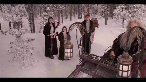Бобр мигом выскочил из пещеры. Возможно, вы полагаете, как решила вначале Люси, что он поступил глупо. Напротив, это было очень разумно. Он знал, что может взобраться на самый верх откоса так, что его никто не заметит среди кустов и деревьев, а ему важно было выяснить, в какую сторону направляются сани Белой Колдуньи. Миссис Бобриха и ребята остались в пещере — ждать и строить догадки. Они ждали целых пять минут. А затем чуть не умерли от страха — они услышали голоса. “Ой, — подумала Люси, — его увидели. Колдунья поймала мистера Бобра!” Каково же было их удивление, когда вскоре у самого входа в пещеру раздался его голос. — Все в порядке! — кричал он. — Выходи, миссис Бобриха! Выходите, сын и дочери Адама и Евы! Все в порядке! Это не она! Это не ейные бубенцы! — Он выражался не очень грамотно, но именно так говорят бобры, когда их что-нибудь очень взволнует; я имею в виду, в Нарнии — в нашем мире они вообще не говорят. И вот миссис Бобриха, Питер, Сьюзен и Люси кучей вывалились из пещеры, щурясь от яркого солнца, все в земле, заспанные, непричесанные и неумытые. — Скорее идите сюда! — кричал мистер Бобр, чуть не приплясывая от радости. — Идите, взгляните своими глазами! Неплохой сюрприз для Колдуньи! Похоже, ее власти приходит конец. — Что вы этим хотите сказать, мистер Бобр? — спросил Питер, еле переводя дыхание, — ведь они карабкались вверх. — Разве я вам не говорил, что из-за нее у нас всегда зима, а Рождество так и не наступает? Говорил. А теперь смотрите! И тут они наконец очутились на верху откоса и увидели... Что же они увидели? Сани? Да, сани и оленью упряжку. Но олени эти были куда крупнее, чем олени Колдуньи, и не белой, а гнедой масти. А на санях сидел... они догадались, кто это, с первого взгляда. Высокий старик в ярко-красной шубе с меховым капюшоном; длинная седая борода пенистым водопадом спадала