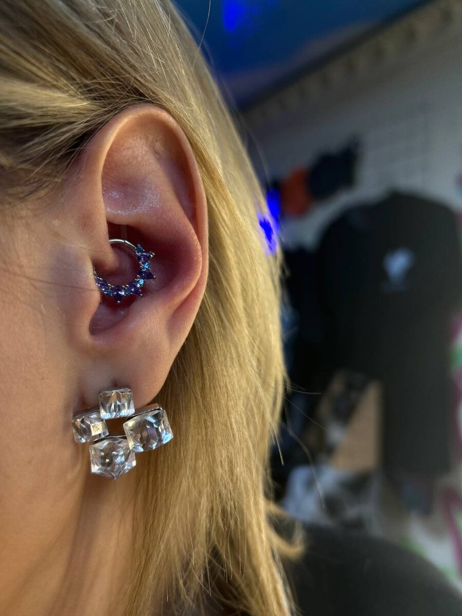 · Зимой: под одеждой пирсинг защищен, нет пыли и пота. Единственный нюанс — нужно аккуратно снимать свитера, чтобы не зацепить украшение. Главное — избегать переохлаждения свежей ранки.