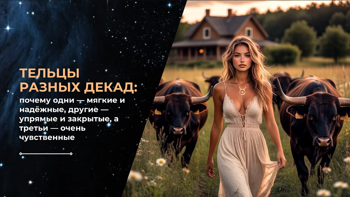 Астропсихолог в эфире и в стереотипах о Тельцах числятся обычно "спокойные", "приземлённые", "надёжные люди". И это правда… но не вся. Потому что один Телец — уютный и тёплый, второй — будто бронёй оброс, а третий — тонкий, чувственный и неожиданно сложный внутри. И дело здесь не только в характере или воспитании. Как и с другими знаками, разница часто начинается с того, когда именно человек родился внутри знака — и какие энергии примешались к солнечному Тельцу через личные планеты. Разберёмся по декадам 👇 Это Тельцы, у которых внутри больше овновского огня, чем принято думать. Они инициативнее, чем классические Тельцы, быстрее загораются идеей, чаще идут «напролом», если чего-то хотят, могут быть довольно прямолинейными и даже резкими Такие Тельцы: В них больше личного эго, желания действовать по-своему, стремления отстоять территорию. 👉 Это Телец, который не просто «любит комфорт», а борется за него. Иногда — с кулаками (хотя бы внутренними). Снаружи они могут казаться упрямыми, а