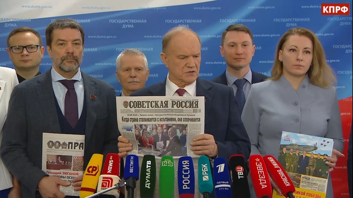 Лидер коммунистов начал с оценки работы парламента за 4,5 года, подчеркнув необходимость отчитаться не только за последние месяцы, но и за весь период, большую часть которого идет специальная военная операция. Он отметил, что с интересом изучил итоговую пресс-конференцию президента и поддержал его позицию по военно-политическому блоку.