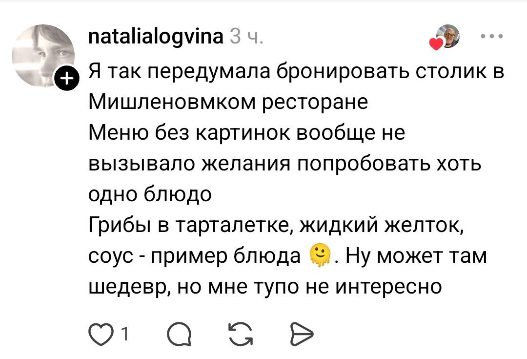 Да, последние лет 10 это твердят ресторанные эксперты, сами рестораторы, шефы, кто угодно, но только не ваши гости 🤌 Скрины прилагаю, таких у меня еще много. Обычная кофейня или лакшери ресторан — меню можно сделать с фотографиями. Красивое, стильное, качественное. И так же меню с фото можно так заколхозить дизайном, качеством бумаги, креплением, что лучше без фото, чем так. Поэтому, чтобы сделать дизайн с фотографиями стильным, важны: — качественная фотосессия блюд — красивая подача блюда. тут работает ваш шеф, если мы говорим о ресторанах — дизайн Вилия предупреждает: экономия на этом пункте чревато неприятными последствиями 😁 — качественная печать — своевременная замена при изнашивании меню Так что смотрим не на тренды и мнение экспертов, а на ваших гостей. И с учетом мнения гостей, анализа целевой аудитории, подбираем формат меню. А какое меню в заведении у вас? С фото или без? Скидывайте мне ваши меню @vilya_menu, я подскажу, как его можно улучшить и подходит ли формат мен