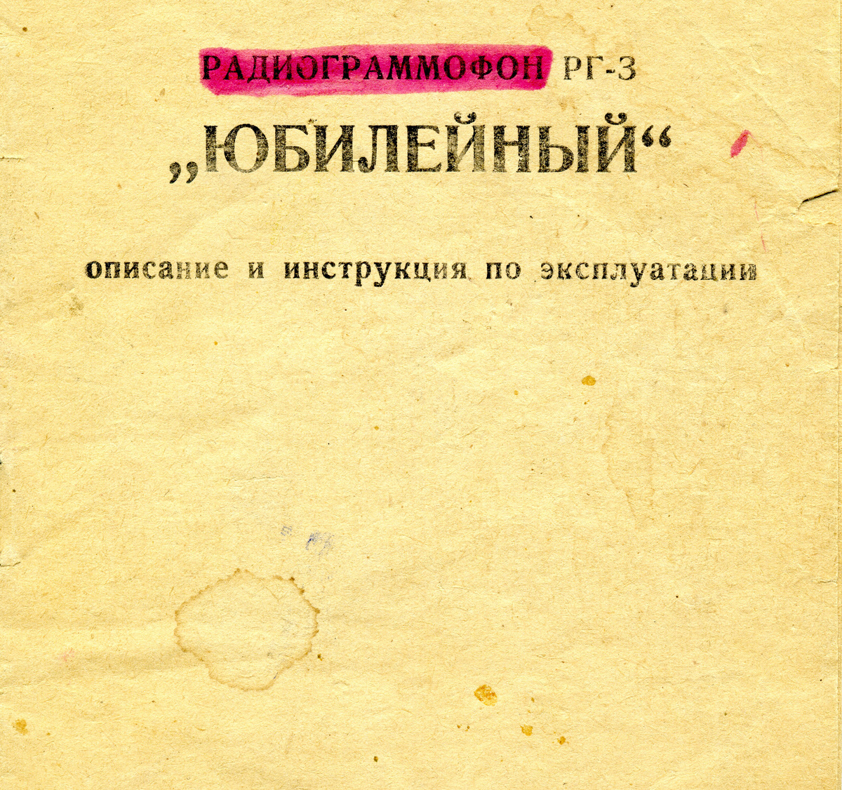 Радиограммофон РГ-3 "Юбилейный".Описание и инструкция по эксплуатации. В моем детстве был такой волшебный чемоданчик,на нем я слушал сказки разные,"Радионяню" на гибких пластинках из журнала "Колобок",но и не только сказки..очень мне нравилась пластинка "Кукарача" ,пока однажды я ее случайно не разбил...это было настоящее горе...СО временем "Юбилейный" сломался...мама брала для меня в ателье проката электрофон "Юность",а потом у нас появилась стереорадиола "Вега"и волшебный чемоданчик стал не нужен..А инструкция от него осталась .("Юбилейный" я потом (на волне ностальгии) все же купил).Инструкция конечно потрепана временем,но составить впечатление о том времени по ней можно..Итак: